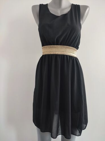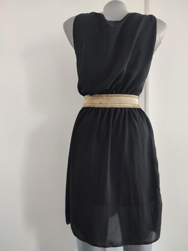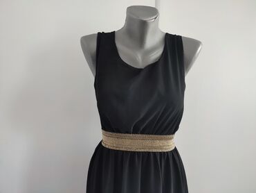 Elegantna večernja haljina – crna, duga, sa dramatičnim šlepom i visokim šlicem. - Kroj: sirena/suknja sa naborima napred, visoki otvor na butini, produženi asimetrični šlep sa strane. - Gornji de...