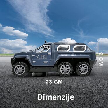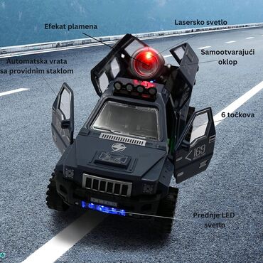 Idealan za maštovitu igru: taktičke misije, policijske i vojničke scenarije, noćnu vožnju uz svetla i paru. Realistični detalji karoserije, robustan izgled, otvarajuća vrata i oklop koji se podiže otkrivaju „top” sa svetlosnim efektom.