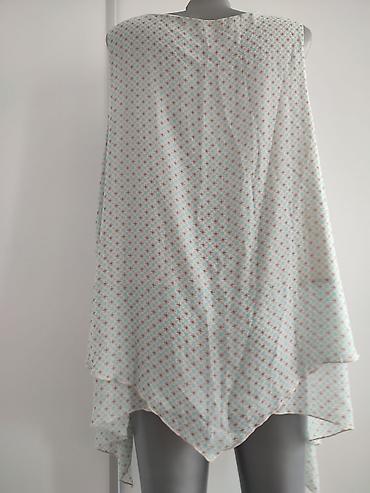 Tunika, može i za plažu Tirkizna tunika/haljina od laganog, prozračnog materijala. Duboki V-izrez ukrašen crnom čipkom i sitnim sjajnim detaljima u metalik tonovima. Poseduje vezice na dekolteu i d...