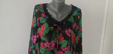 Nova tunika, sa etiketom, italijanski brend, prelep dezen, divan tegljiv materijal, satenska traka koja moze da se vezuje kako zelite, rukavi idu blago u zvono. Fenomenalna. Dinenzije, duzina tuni...