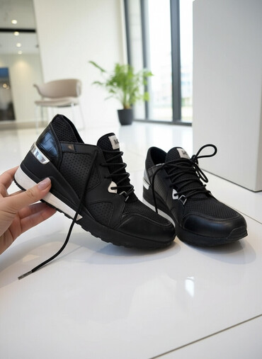 - Gornjište kombinacija perforirane kože/eko‑kože i mrežaste tekstilne tkanine za bolju prozračnost