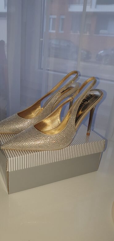 - Tanka visoka štikla u metalik zlatnoj nijansi