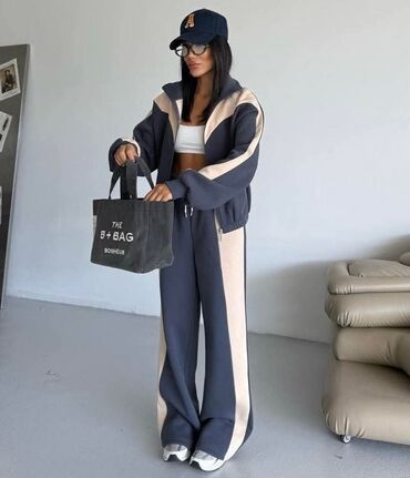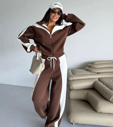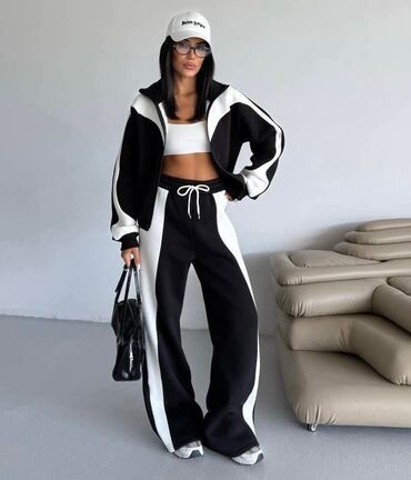 - Dvočlani set: gornji deo na rajsferšlus sa visokim okovratnikom i donji deo – pantalone sa širokim nogavicama