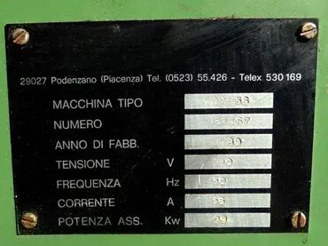 Ale skener Gabbiani 4637-22. Dvostruki finalizer za vrata, nameštaj i pločaste elemente. Radna dužina: 3100 mm. Min. otvor: 160 mm. Maksimalna korisna visina: 120 mm. Opremljen sa 3+3 radne jedinice: – Snaga glavnih motora: 5,5 KS ili 8 KS, brzina 3000 ili 6000 ob/min. – Snaga predrezača: 1,3 KS. Snaga motora za glodalice: 5,5 KS ili 8 KS, brzine 3000/6000 ob/min. Motori, okretni 0-90° , regulisani pomoćnim motorom snage 0,33 KS. Sa VF pretvaračem napona struje: 380V /50Hz. Promenljiva brzina obrade: od 4 do 18,5 mt/min. Snaga transportera: 2,2 kW, brzina 1430 ob/min. Marka: Gabbiani, model TMN 56. Ukupna angažovana snaga: 29 KW. Polovno, uvoz iz Italije.