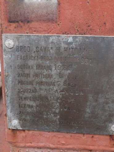 Atmos 1147-16Proizvodnja: Brodogradilište "Sava", Mačvanska Mitrovica. Radni pritisak 6 bara, probni pritisak 7,8 bara. Sadržaj: Para - voda. Temperatura: 164 ° C. Zapremina: 2x4 m³ Težina posude 2 x 2x1010 kgPolovno, remontovano, uvoz iz Italije**Apokalipsa d. o. o.** Mačvanska Mitrovica , Žarka Vučinića 32B, na lageru ima preko 2.500 mašina, koje možete pogledati i isprobati našim u halama . Veliki izbor novih i polovnih mašina za drvnu industriju i stolare . Najveći izbor u regionu . U ponudi i mašine za obradu metala .