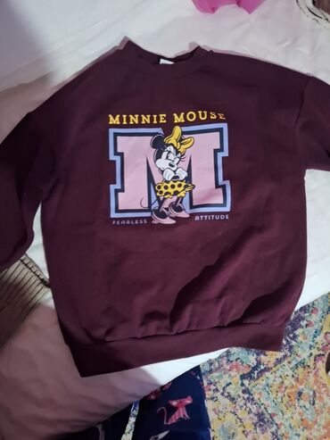 - Dizajn: veliki natpis “MINNIE MOUSE” i slovo “M” na dukserici sa ilustracijom Minnie u žutoj mašni i suknjici; na pantalonama manja ilustracija Minnie i vertikalni natpis “MINNIE” sa slovom “M”.