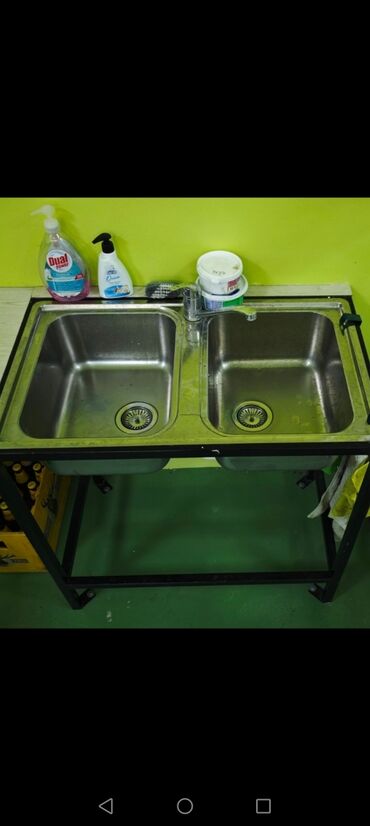 Druga bojaInox sudopera sa dve kade na metalnom stalku
