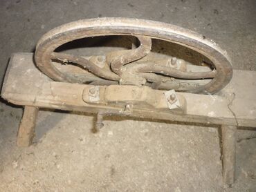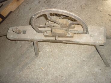 - Konstrukcija: kombinacija masivnog drvenog postolja sa nogarima i gvozdenog Tocka sa rezom po sredini
