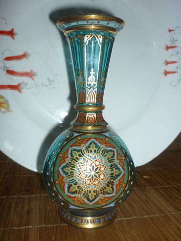 - Tehnika: bogata hladna emajl dekoracija i pozlata (zlatni obrubi i ornamenti)
