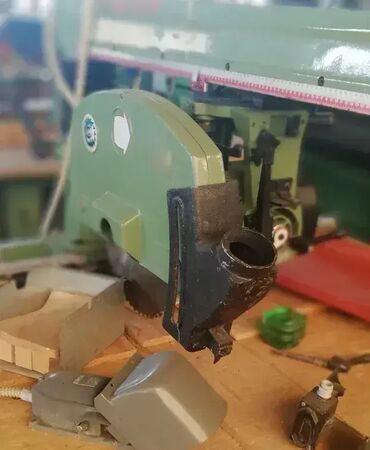 Štucer 1679. Potezna kratilica sa konzolom, radijalna. Marka: Omga, model: Radial 900. Prečnik lista testere: do 400 mm. Osovina: Ø 30 mm. Visina reza pod uglom 45° : maksimalno do 85 mm. Visina reza pod uglom 90° : maksimalno do 125 mm. Dužina reza: 900 mm. Brzina motora: 3000 ob / min. Snaga motora: 5 KS. Ukupne dimenzije: 1060 x 1190 x 1625 mm. Težina 368 Kg. Polovno, uvezeno iz Italije.