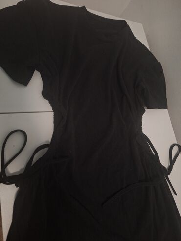 Crna haljina sa kratkim rukavima i bočnim prorezima na vezivanje