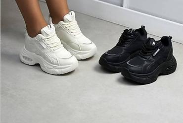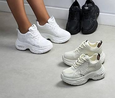 - Dizajn: moderna platforma sa izraženim đonom i futurističkim linijama. Više varijanti – potpuno bele, potpuno crne i svetle/bež nijanse.
