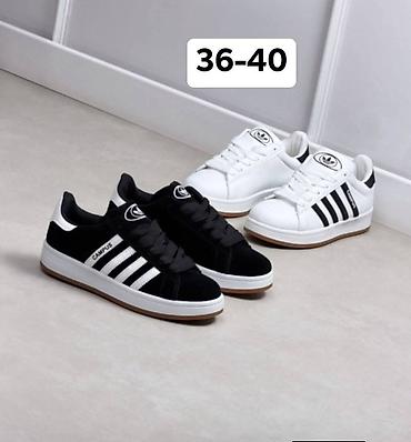 - Niske klasične patike sa prugama (crne sa belim detaljima i bele sa crnim detaljima), gumeni đon sa svetlosmeđom bazom.