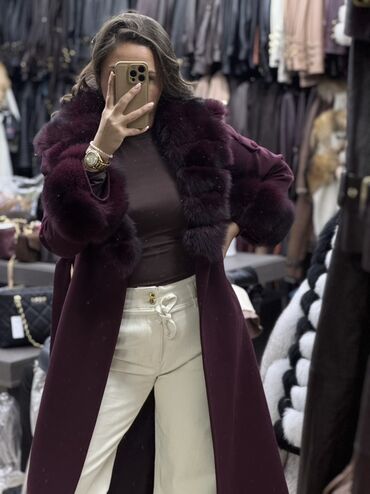 - Luksuzni krzneni detalji: bogata bordo kragna sa segmentima i manžetne od krzna u istom tonu