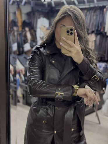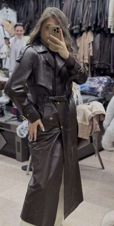 Elegantna i funkcionalna kožna jakna/mantil idealna za jesen i zimu, lako se uklapa uz čizme i klasične kombinacije.