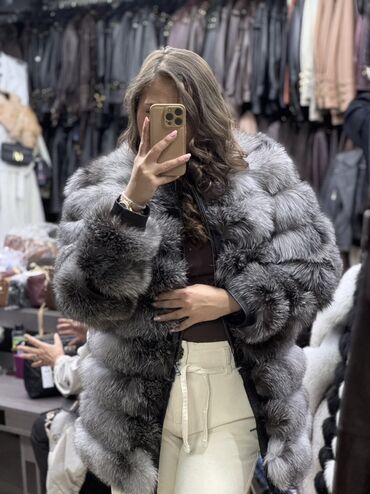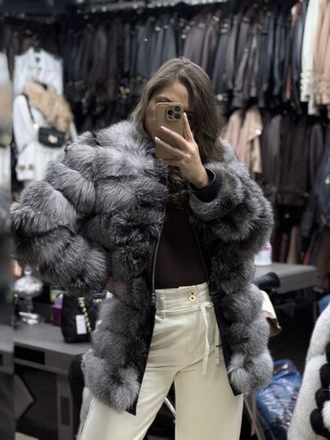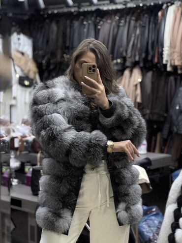 - Detalji: naglašena tekstura i prelivi sive do tamno antracit boje; diskretni bočni šavovi; bogat krzneni rub oko rukava i donjeg dela.