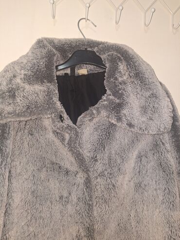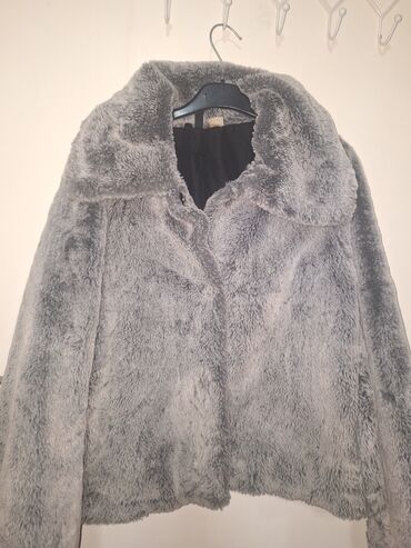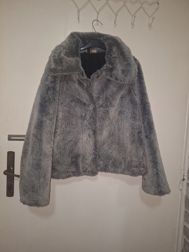 Ženska bunda/kaput od krzna, kratkog kroja, vel s - Boja: sivo‑smeđa sa prirodnim nijansama - Model: do kukova, strukiran kroj - Kragna: velika i bogata, od dužeg, paperjastog krzna u sivoj nijans...