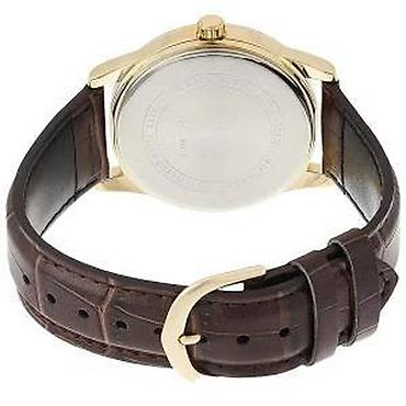 Specifikacija: Model: MTP-V001GL-9B Mehanizam: Kvarcni Vodootpornost: 3bar/30m Prečnik kućišta: 38mm Debljina kućišta: 8mm Težina: 42g Staklo: Mineralno staklo Materijal kućišta: Čelik Materijal narukvice: Koža Svi CASIO satovi dolaze sa garancijom od 24 meseca, pružajući Vam sigurnost pri kupovini.