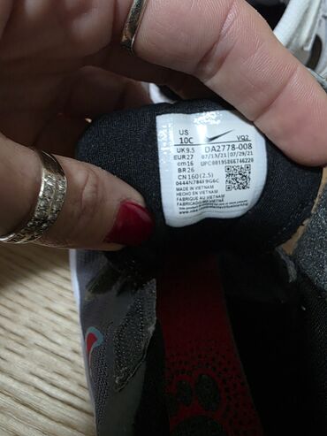 Dečje Nike patike – 2 para 1) Nike (crno-bele) – model oznaka DA - Veličina: US 12C / UK 11.5 / EU 29.5 (18 cm) - Gornjište: mrežica i sintetički materijal, crno sa belim Swoosh logoom - Đon: pena...