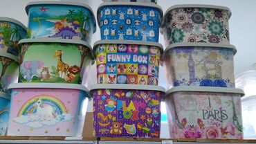 - Dečiji motivi: dinosauri, džungla sa životinjama, jednorog i dugine boje, “FUNNY BOX”, “PLAY BOX”, šarene životinjice.
