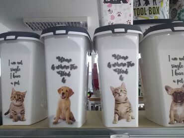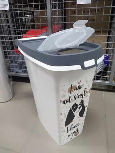 - Prostrana kanta pravougaonog oblika, pogodna za skladištenje suve hrane za pse ili mačke.