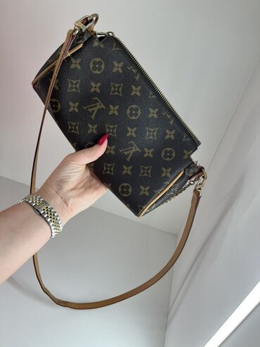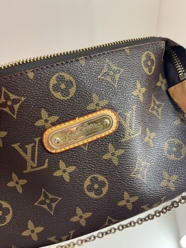 - Detalji: prednja metalna pločica sa ugraviranim “Louis Vuitton”, zlatni lančani remen za nošenje u ruci/na ramenu