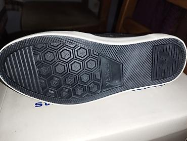 - Boja: tamno siva (denim efekat) sa braon detaljima na peti i oko đona; beli spoljni đon sa braon ivicom