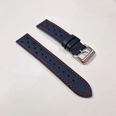 Opis: Širina: 20mm Boja: Plava Boja kopče: Srebrna Materijal narukvice: Prirodna koža (Prevrnuta koža) Materijal kopče: 316L Nerđajući čelik Način zamene: Quick-release