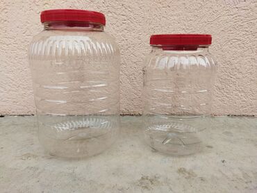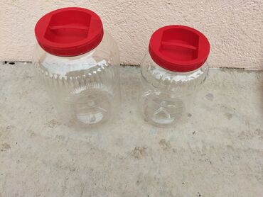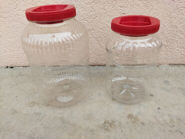 - Set od dve prozirne tegle različitih zapremina (veća i manja), izrađene od čvrste plastike.