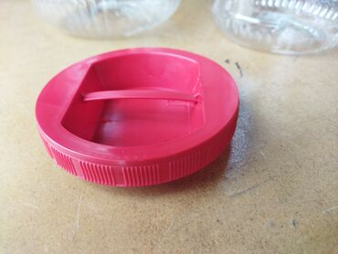- Crveni poklopci sa narezanim obodom za sigurno zavrtanje; integrisana ručka na poklopcu za jednostavno nošenje i otvaranje.