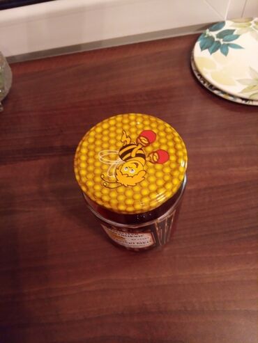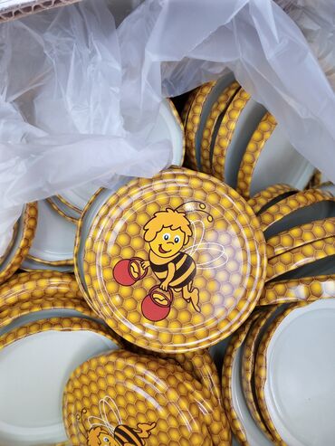 Metalni poklopci za tegle sa motivom pčele i saćem.