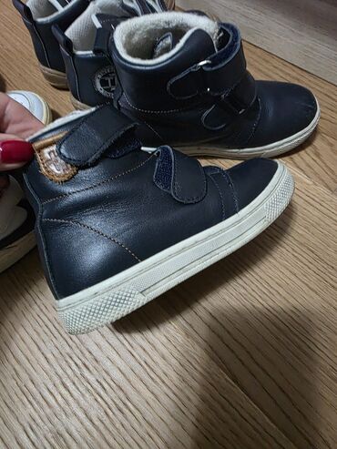 - Tamnoplave visoke patike/cipele sa čičak kaiševima i gumiranim smeđim đonom; bočni okrugli bedž sa TP oznakom. Na đonu označena veličina 25.