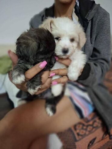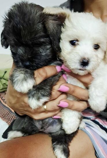 Štenci malog rasta – havanski bisoni sa paperjastom, talasastom dlakom. U leglu su dva muska i jedno zensko štene vidljivi na fotografijama: dva belo/krem, drugo tamnosivo sa belim šapicama i grudima . Krupne, tamne oči, kratke njuškice i spuštene uši. Kompaktne građe, lagani, pogodni za stan i porodice. Očekivana visina u odraslom dobu mala do srednja.