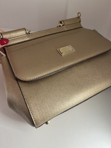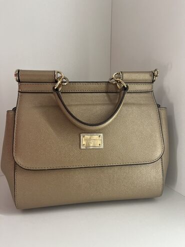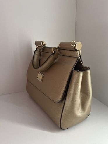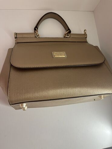 Elegantna, strukturalna torba pogodna za dnevne i večernje kombinacije; dovoljno prostora za osnovne stvari (telefon, novčanik, ključevi, kozmetika). Klasičan D&G dizajn u luksuznoj zlatnoj nijansi.