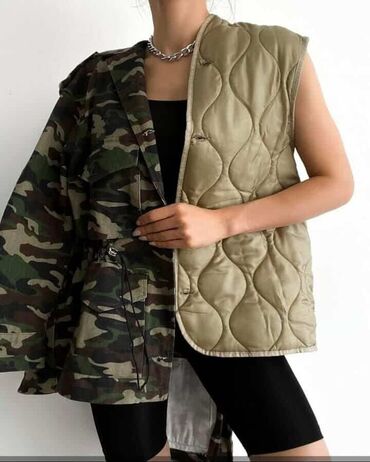 - Dizajn 2 u 1: spoljašnji vojnički print + unutrašnji prošiveni prsluk u bež/maslinastoj boji koji se može nositi zasebno ili zajedno.