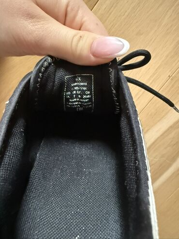- Vezivanje: klasične crne pertle + dekorativna bela jezičak-traka sa natpisom “ARMANI EXCHANGE”