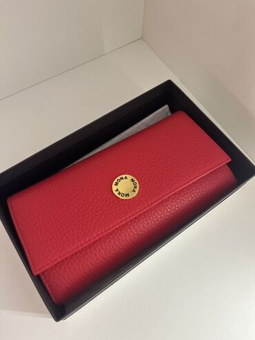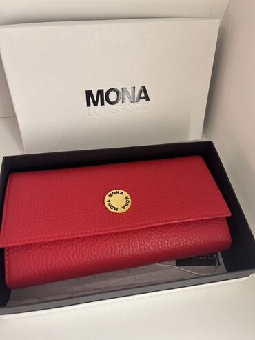 Mona kožni ženski novčanik – crveni - Materijal: prirodna, zrnasto teksturirana koža - Boja: intenzivno crvena - Zatvaranje: preklop sa metalnim dugmetom i dekorativnom okruglom pločicom sa MONA l...2 300 RSD