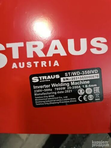 Tehnički podaci: Snaga: 7,8 KVAAmperaža: od 20 – 350 AElektrode: 1,6 – 4.0 mmTežina: 5kgUz aparat Straus 350A dobijate sledeću opremu: Maska za zavarivanjeKabloviŽičana četka sa čekićem za varove