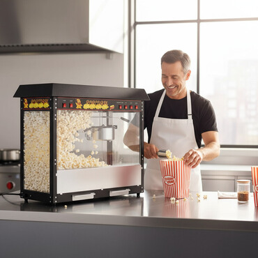 🍿 Profesionalni aparat za kokice sa jednim ili dva lonca, idealan za bioskope, ugostiteljstvo, sajmove i prodajna mesta. Omogućava veliku proizvodnju kokica do x kg po satu, uz zadržavanje ukusa i topline.
