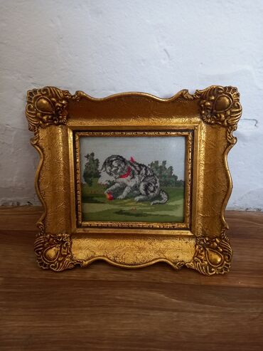 UpotrebljenоDekorativna zidna slika – ručni vez (gobelinsko platno) sa motivom mačke
