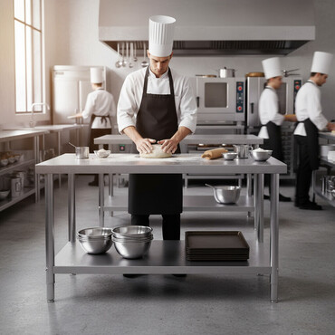 Profesionalni kuhinjski radni sto izrađen od visokokvalitetnog nerđajućeg čelika, idealan za restorane, ketering, pekare i druge ugostiteljske objekte.
