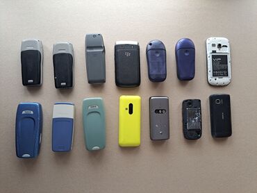 - Pojedini uređaji imaju baterije, neki su bez poklopaca ili sa oštećenim ekranima; prisutne su različite maske/boje (npr. žuta Nokia).