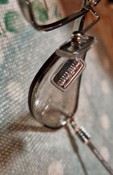 Prodajem Miu Miu naočare koje odišu bezvremenskom elegancijom. Ovaj model karakteriše prepoznatljiv, blago mačkasti oblik sa tankim metalnim okvirom i diskretnim brendiranjem na papučicama i staklima.