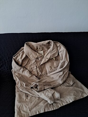 XL (EU 54)Bež muška jakna – klasičan model sa kragnom i kopčanjem na rajsferšlus i dugmad.