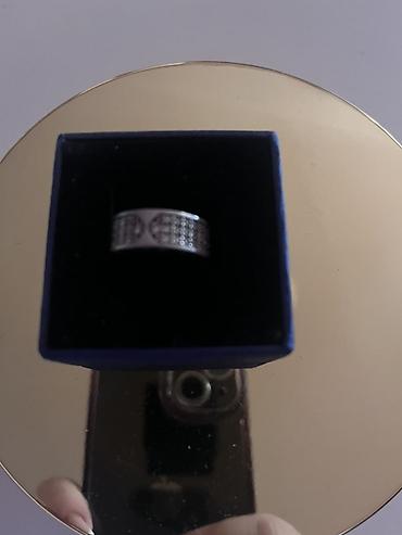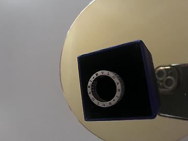- Prsten: srebrne boje sa ugraviranim natpisom BVLGARI • BVLGARI po obodu; širi profil, glatka unutrašnjost, spolja kružna bordura sa sitnim tačkastim detaljima.
