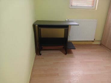 - Kompaktan sto sa radnom pločom standardne širine, pogodan za laptop ili desktop monitor.