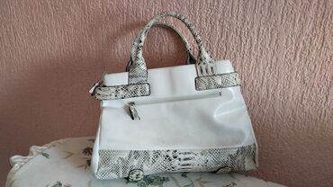 - Materijal: veštačka koža (glatka bela površina) sa ukrasnim elementima u crno-beloj šari zmije