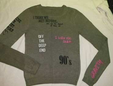 Tally Weijl majica dugih rukava u maslinasto zelenoj boji, ukrašena različitim natpisima i motivima na prednjoj strani i rukavima. Okrugli izrez i ranfle na rukavima i donjem delu majice obezbeđuju udobno pristajanje. Čini je idealnom za ležerne kombinacije i svakodnevno nošenje, pružajući udobnost i moderan izgled. Veličina S