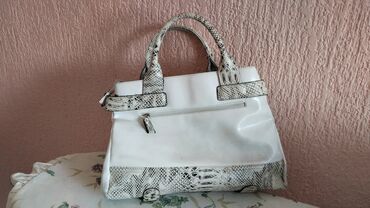 Elegantna torbicaElegantna ženska torba – bela sa detaljima u printu zmijske kože.