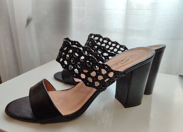 Crne sandale broj 38,kao nove obučene samo za jedno slavlje.Unutrašnje gazište 24.5cm,visina štikle 8cm
